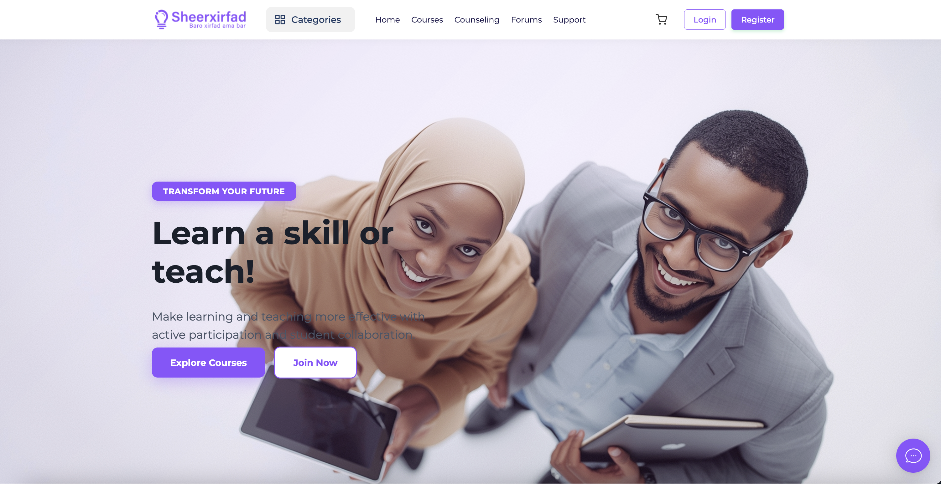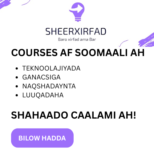 Hordhac Sheerxirfad waa mid ka mid ah platform-yada eLearning ee ugu wanaagsan ee loogu talagalay dadka Soomaalida ah iyo kuwa Afka Soomaaliga ku hadla. Platform-kani wuxuu ku siinayaa fursad aad wax uga barato xirfado kala duwan oo kuu fududeynaya kobocaaga…